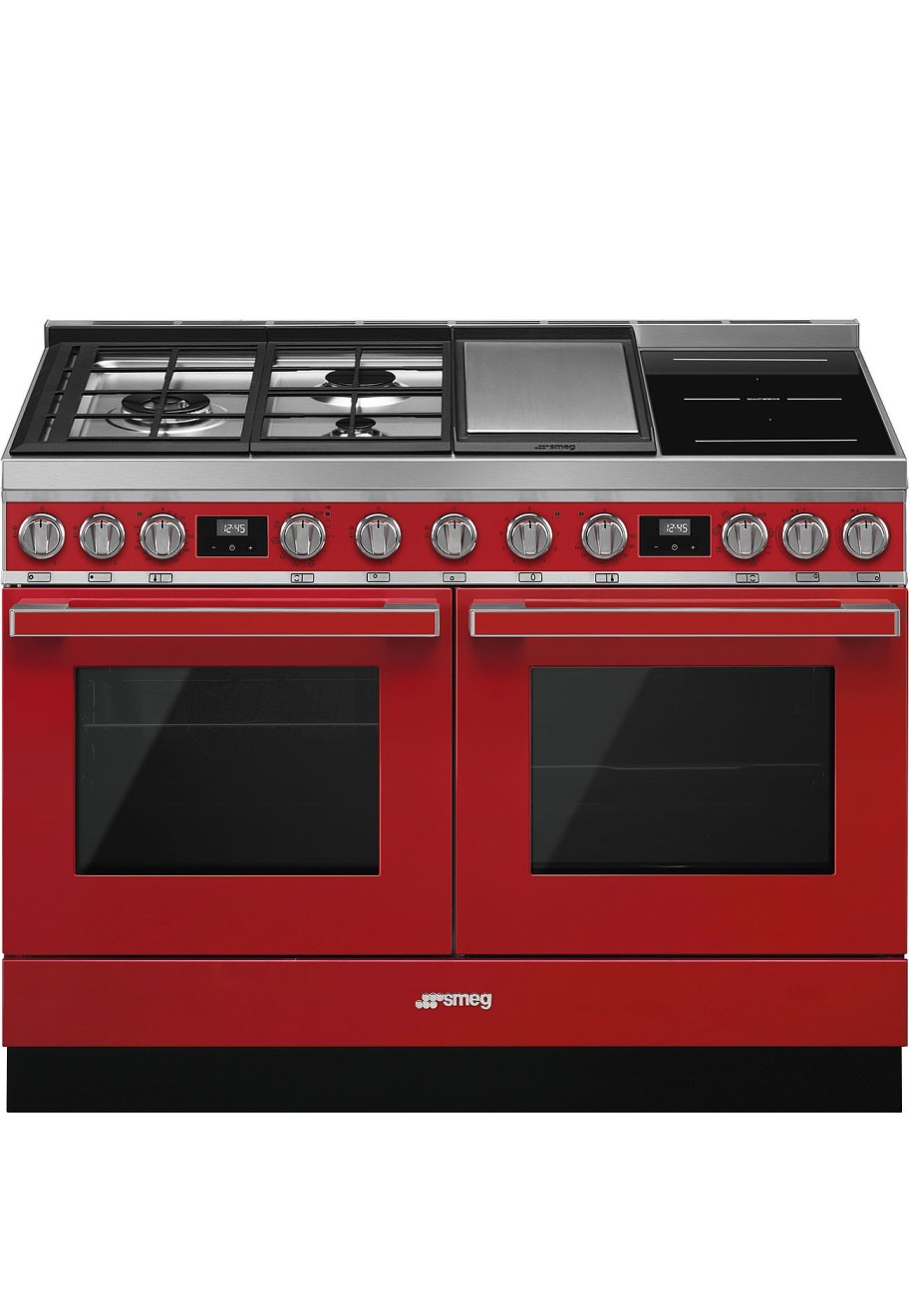 Cocina Portofino 120 cm, color Negro, dos hornos de 60 cm, Horno 1: Termoventilado y Pirolítico, Horno 2: Termoventilado, Vapor Clean, Encimera mixta, 3 zonas de gas, 1 teppanyaki, 1 mulizona inducción